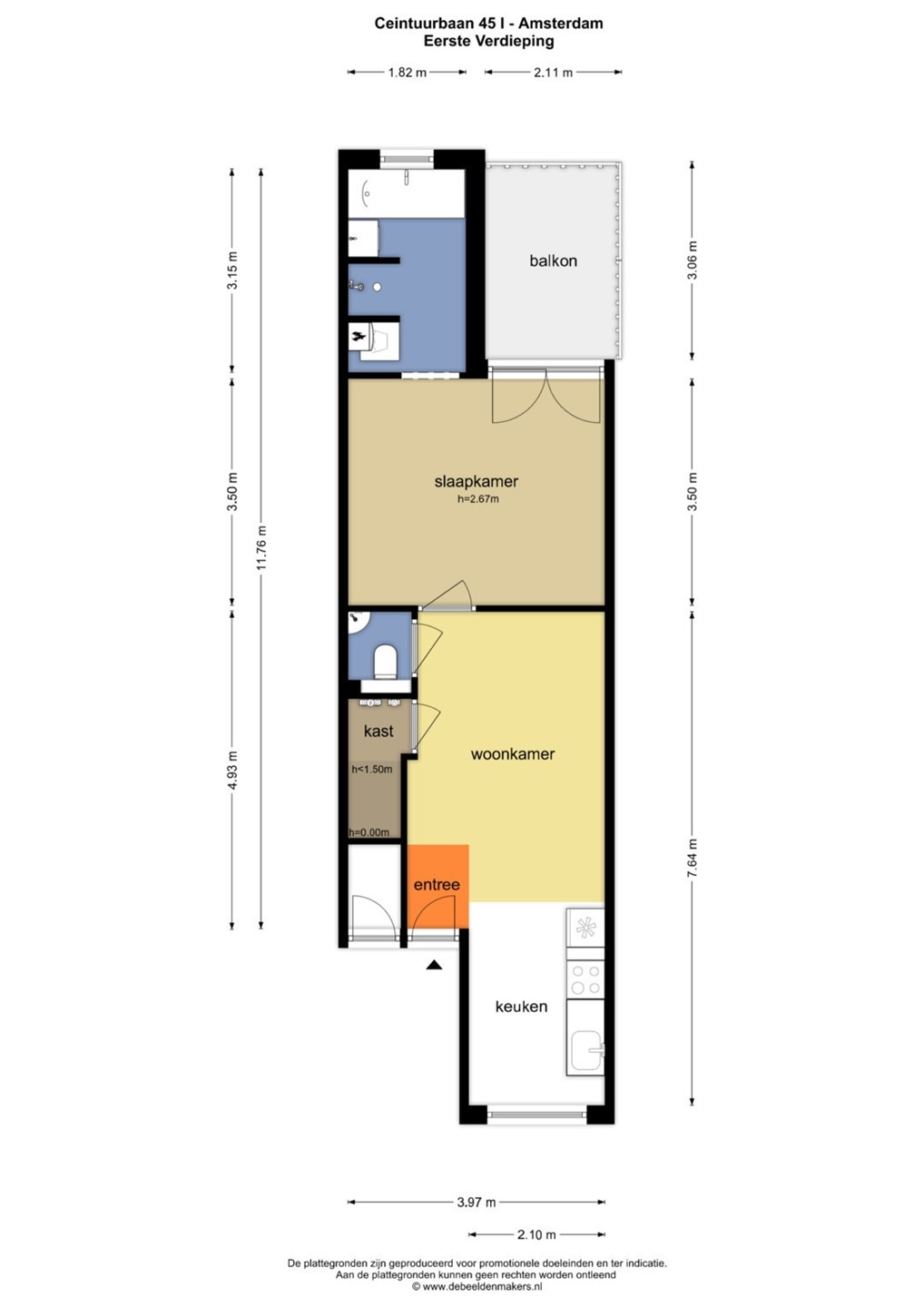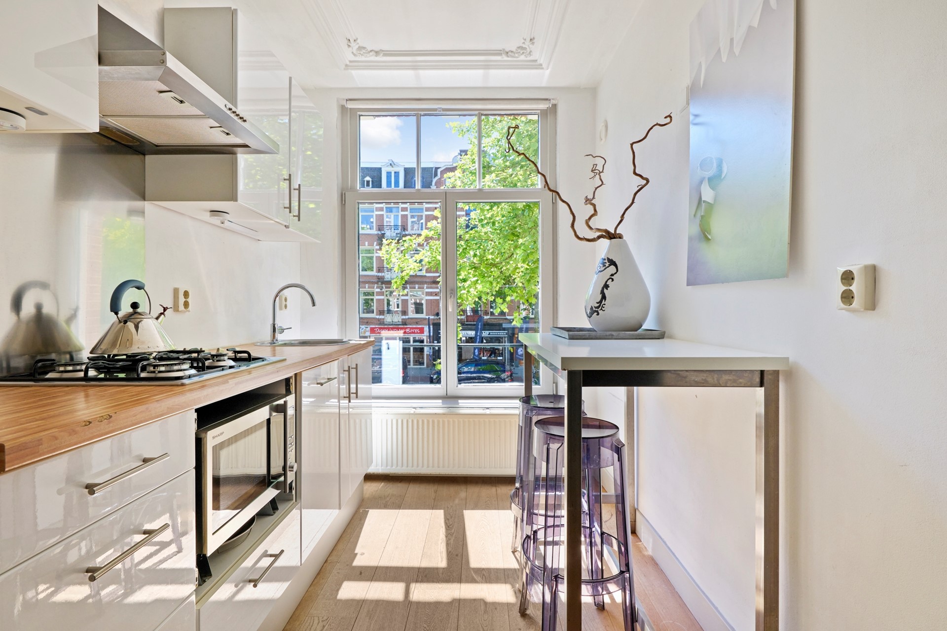 At the kitchen window (double glazing) there is a possibility for a seating area with a view over the Ceintuurbaan.