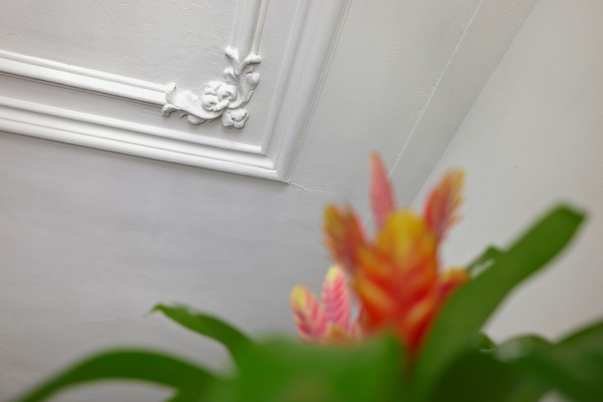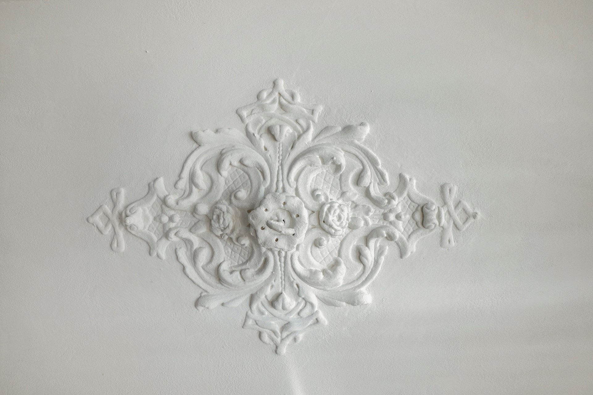 Tevens is het plafond van de keuken fraai versierd met ornamenten met een gecentreerd rozet wat zich loont voor een kroonluchter.