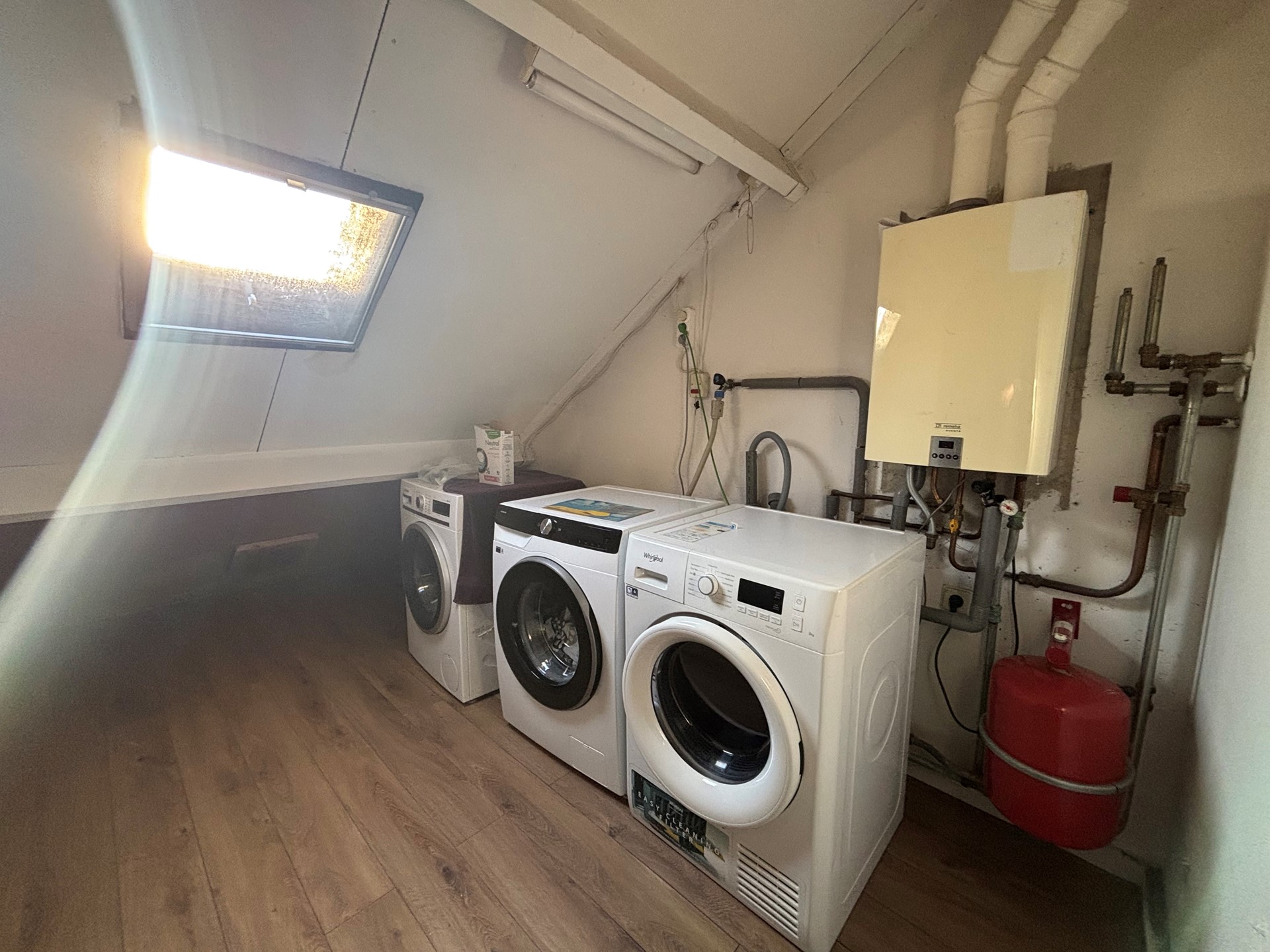 Second floor is large very light and airy master bedroom with dormer, wardrobe and double velux-windows at the rear.