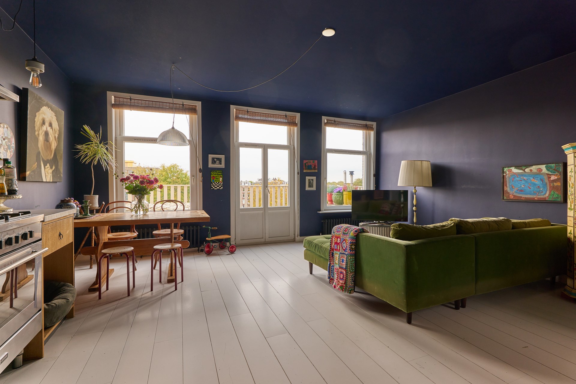 BRIGHT AND COLOURFULlY RENOVATED THREE-ROOM APARTMENT WITH BALCONY, ROOF TERRACE AND AMAZING VIEWS OVER AMSTERDAM