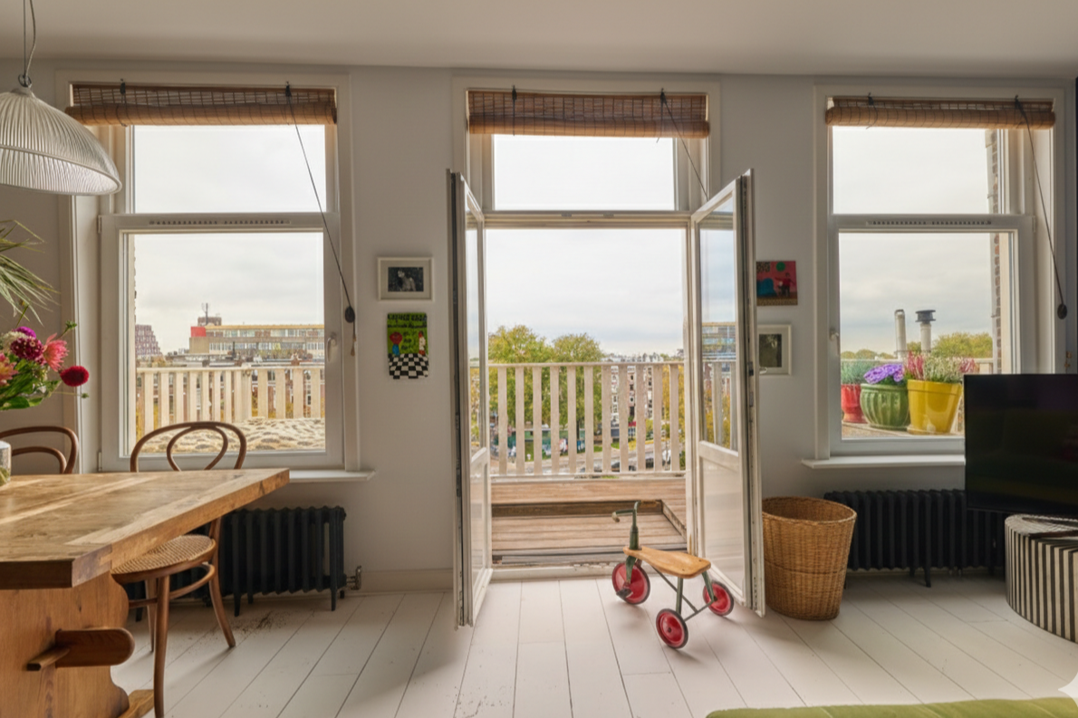 LIGHT AND BRIGHT RENOVATED THREE-ROOM APARTMENT WITH BALCONY, ROOF TERRACE AND AMAZING VIEWS OVER AMSTERDAM