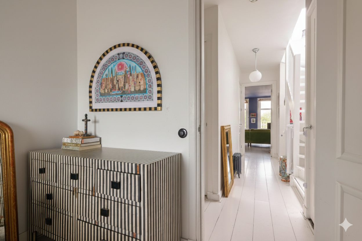 De gehele woning is afgewerkt met klassieke Britse Bohemien invloeden. De woning is voorzien van klassieke gietijzeren radiatoren die perfect passen bij het karakter van het interieur.