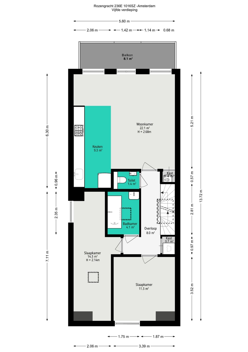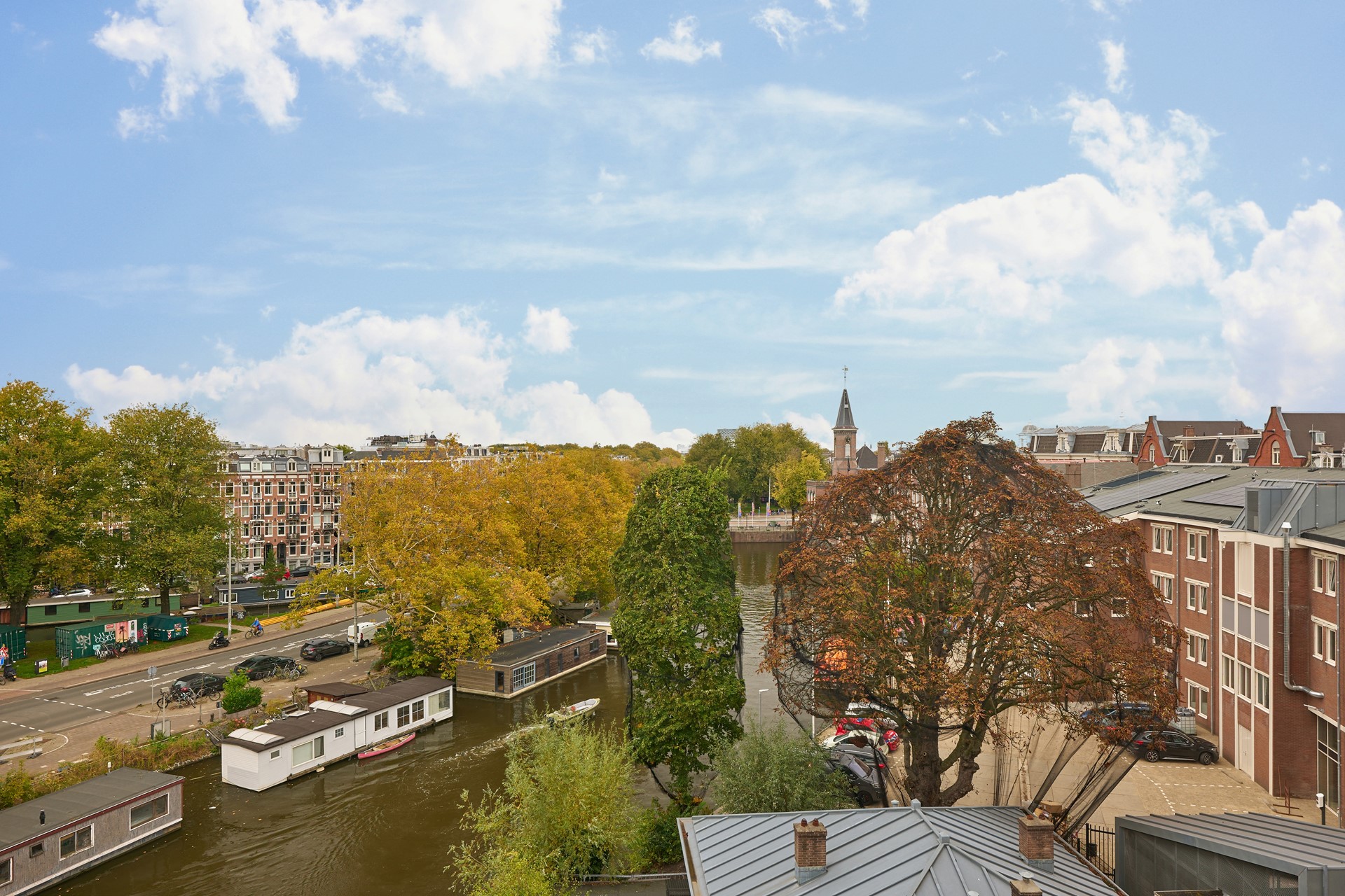 Het appartement heeft hoge plafonds en geniet veel daglicht door de grote raampartijen en dakramen, omringd aan drie zijden met uitzicht over de Singelgracht.