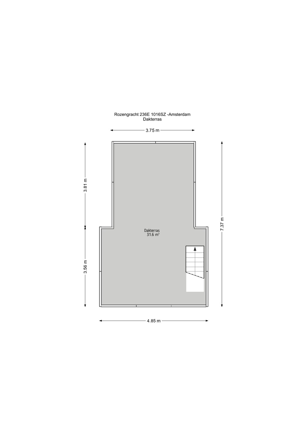 Het dakterras van 32 m2 is te betreden via de ruime trap met een gemakkelijk te openen lichtkoepel, welke tevens zorgt voor extra licht in de hal van de woonverdieping.