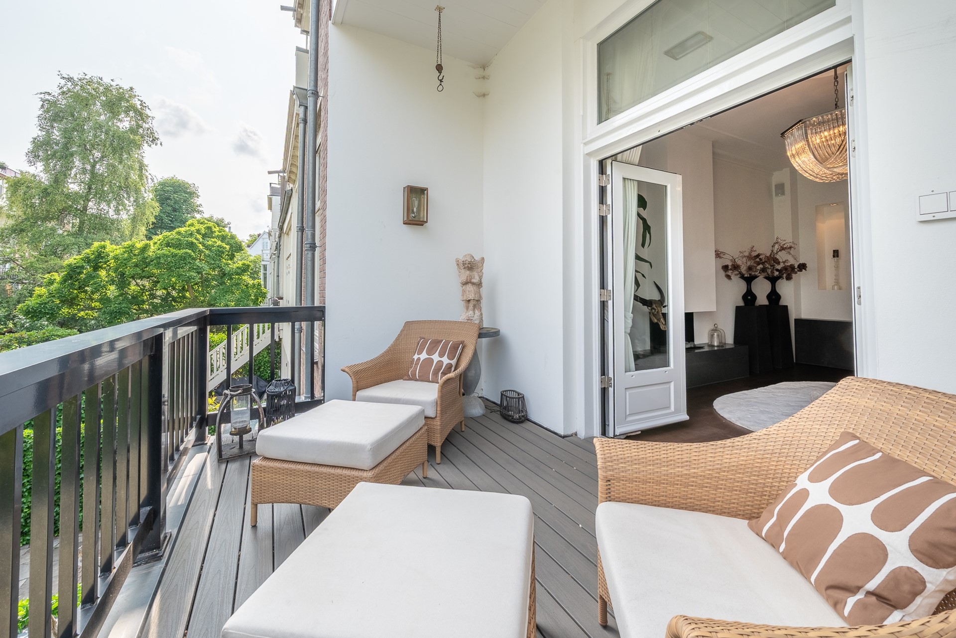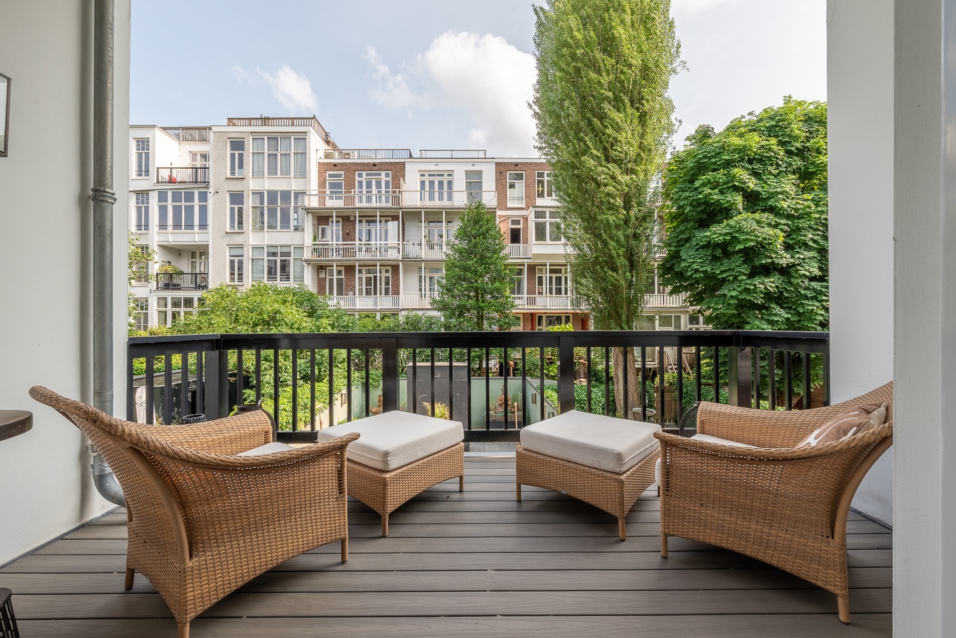 Dubbele deuren in de achterkamer bieden toegang tot het diepe balkon aan de tuinzijde.