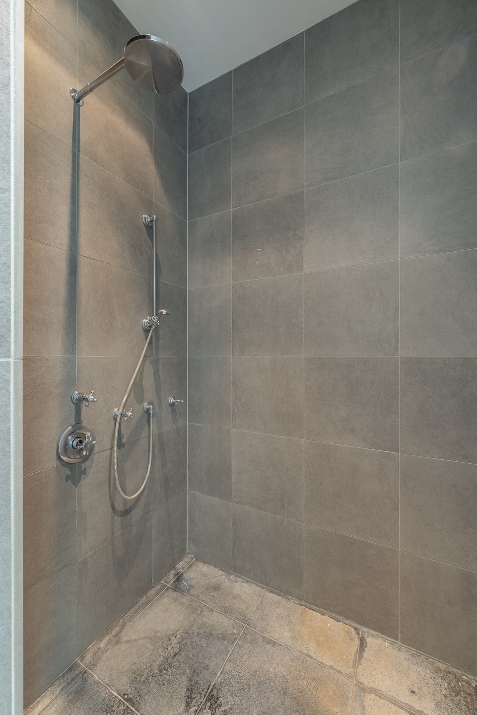 Centraal tussen de slaapkamers bevindt zich een badkamer die toegankelijk is via de hal en is voorzien van een dubbele wastafel, kastruimte en inloopdouche. Daarnaast vindt u op deze verdieping een separaat toilet in de hal en een berging waar de Cv-installatie is geplaatst.